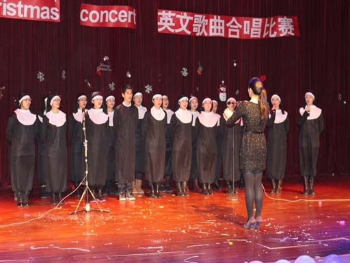 这次比赛,是我们参加的最后一次圣诞合唱比赛。大家都充满了期待,也付出了许多努力。我们一次又一次的在寒风中排练,忘了有多少回,为了合唱比赛的动作,服装,道具,灯光的问题讨论,修改。我们一次一次练习脱衣服,穿衣服,力求快速安静整齐。一次一次的练习歌唱舞蹈,希望能用热情感染观众。最终我们的努力得到了回报,使得我们取得了第二名的好成绩。 这是一次美好的比赛,它让我们的集体更加温馨,让我们的默契更加深刻,也深刻感受到了圣诞的快乐气息,是英语系一年一度的盛会。更是我们大学生涯里,美好的印记。