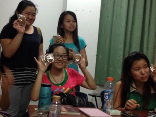 班委很久之间就为举办好这次聚餐规划了好久。我们事先安排好了聚餐流程。吃完丰盛美味的晚餐,我们一起玩博饼。(中秋那会只吃到了月饼没有玩博饼有点美中不足,这回把它补回来,(*^__^*) 嘻嘻……)。我们拿笔记本,订书机,彩笔,圆珠笔,香袋,果冻等等作为博饼的奖品。奖品虽然不起眼,但是丝毫不影响大家玩乐的心情。状元花落谁家,谁是榜眼,谁中了探花,一阵阵激动地欢声笑语,谁中了果冻甚至谁什么也没中,一阵阵的唏嘘和欢笑。。。平时安静不爱讲话的同学在游戏中放开拘束,平时活泼开朗的同学夸张点说就是“疯了”。老师们在这样的氛围里也和我们打成一片,融入我们的快乐中,快乐互相传递,整个房间一种甜甜友爱的味道。。。