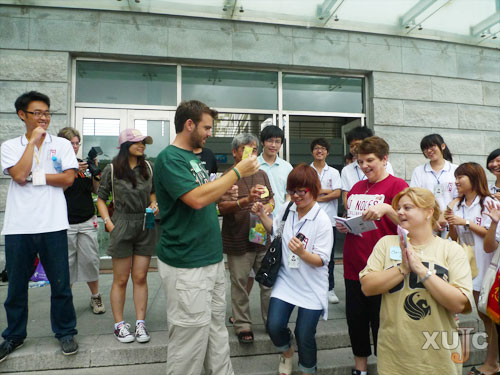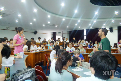 6月11日,英语系与美国中佛罗里达大学口语俱乐部(ACEC,University of Central Florida,U.S.A)举办了English Camp(英语营)活动。 尽管当天上午风雨不期而遇,但这没有阻挡来自美国中佛罗里达大学口语俱乐部的教师和伟德官网学生沟通交流的热情。英语系学生特地披上“英语系欢迎您”的绶带,迎接来自美国的友人。当天参加此次活动的学生总共55名,不仅有英语系的学生,还有来自电子商务系、电子工程系、国际经贸系等院系的同学。 美国中佛罗里达大学口语俱乐部的老师们将参加活动的学生分成四个小组,在公共教学一号楼的四间教室里同时进行“责任”“信赖”“关怀”“尊重”英语营地趣味主题活动。主题活动旨在启发学生对自身品质与友谊内涵的思考。活动中,同学们通过角色扮演恰当地使用英语语言,提高角色责任感。老师们还与同学们进行了游戏互动,例如把其中一位学生的双眼蒙上,其他学生用英语提供各种提示,让这位蒙住眼睛的同学依据提示找到目的地。游戏环节使活动气氛活跃,教室里传来阵阵欢笑声和掌声。上午的营地活动结束时,美国老师和同学们一起合照,并送给同学们带有佛罗里达标记的球衣、球帽和其他小礼物。 下午,来自美国的老师们为伟德官网师生做了主题为“真爱五种语言”和“通向成功的秘诀”的讲座。讲座中,美国老师鼓励同学们踊跃提问。讲座结束后,仍有许多同学意犹未尽,与美国老师留下了电子邮箱等联系方式,方便今后进一步交流。 英语系执行主任杨昆表示,这类紧扣主题的新兴语言活动形式为同学们提供了英语学习的机会,开拓了大家的视野。 |
