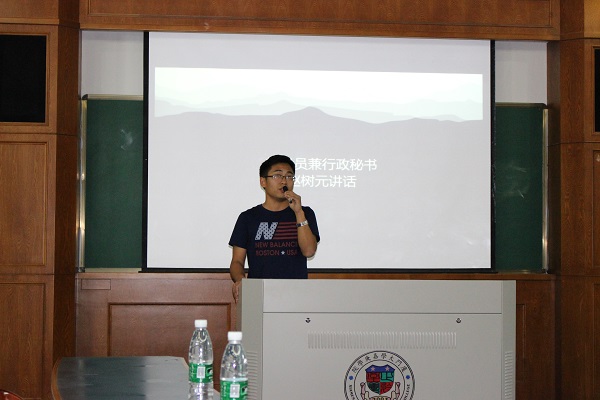 最后是英语系辅导员兼行政秘书赵树元老师对团学会这一年的工作作一总结。赵树元是在团学会背后默默支撑的人,他一直给我们帮助,引领我们正确的方向。他充分肯定了团学会取得的成就,勉励大家不断取得成功和进步。这一年,也感谢赵老师的支持与鼓励。