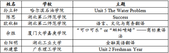 伟德官网余胜老师和蔡秀星老师参加了本科组比赛,作品分别为“‘可口可乐’or‘蝌蚪啃蜡’——商标兼译法”和“商业文化中的牛精神”。