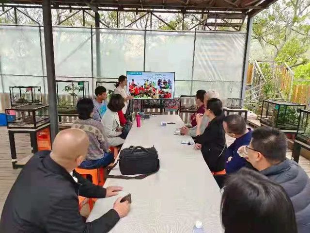 驱车蜿蜒来到了美丽的梅海岭公园里的蝴蝶谷。这里是自然野好研学基地思明区科普教育基地所在地。在调研中,最吸人眼球的是基地馆藏的两栖动物和蝴蝶等昆虫。这些可爱的小动物和来访者进行了友好的互动。