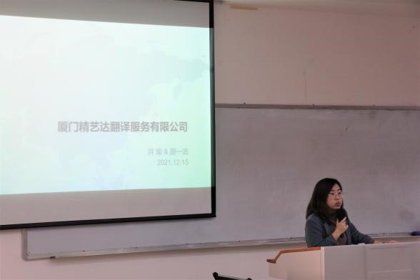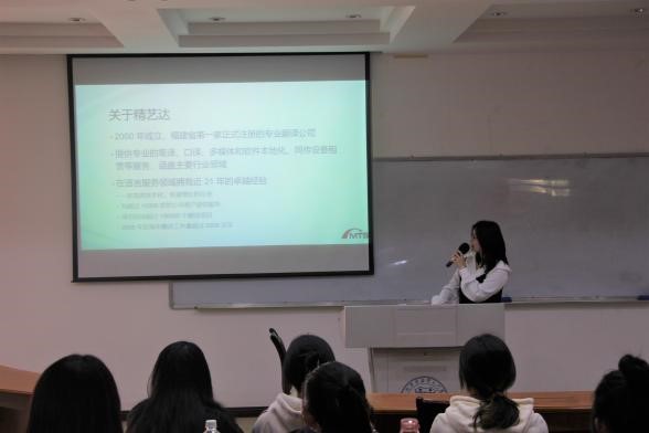 宣讲会开始,李娜老师对厦门精艺达翻译服务有限公司代表的到来表示诚挚欢迎,并做了简单介绍。