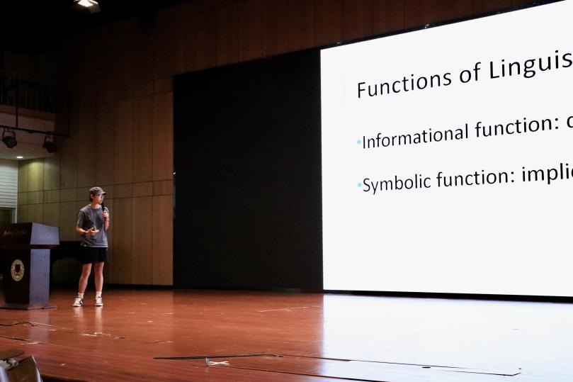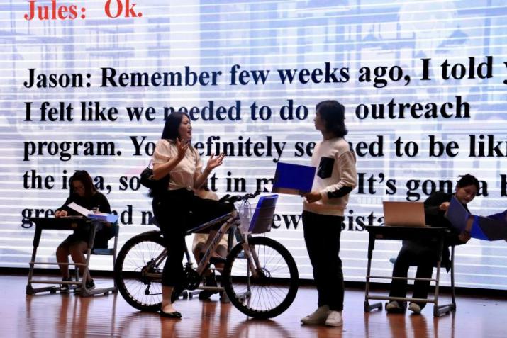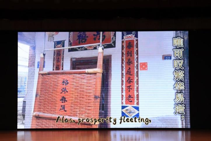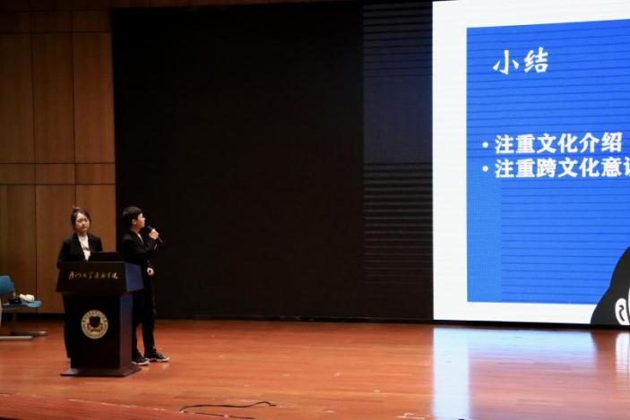 “漳州品牌文化推介”、“区域语言景观调查”、“法语教学视频设计”等等12门实践周教学课程带 来了精彩纷呈的汇报展示。独具特色的原创rap与闽南语解说碰撞,将林语堂文化推向大众的视野;用法语改编耳熟能详的歌曲也有不一样的感觉;还有精彩的戏剧表演和完美的口头汇报等等,都向在场师生展现了各课题组这半个月的累累硕果。
