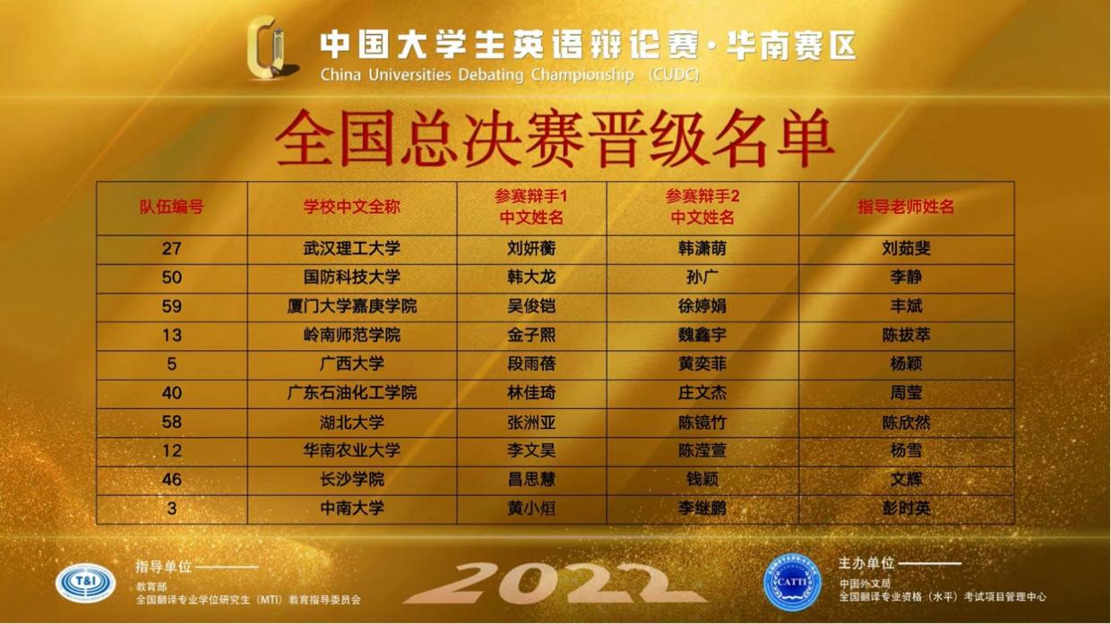 此次为我校英语辩论队首次参加该项赛事,可喜可贺。能取得如此佳绩,与领导的支持和全体老师和队员的付出是分不开的。此次备赛,辩论队负责人陆红艳老师和其他三位指导老师(左慧芳、丰斌、陈柏)齐心协力辅导队员,最后选出吴俊凯和徐婷娟两位同学代表我校参赛,同时委任丰斌老师负责跟进比赛进程。祝愿嘉庚学院英语辩论队在十一月份的全国决赛中走得更远、再创辉煌、为校争光。