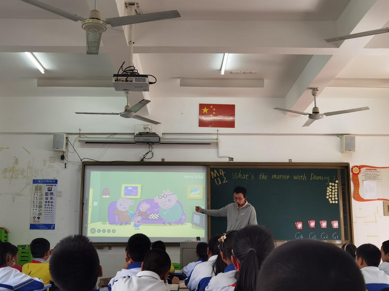 “之前一直没有尝试过作为一名真正的老师来给学生授课,很难得学校有这个机会,让我能来到厦大附小进行教师实习。初到学校,我真的是一无所知,关于教师如何进行课前的环节设计,课中的课堂把控,课后的总结纠漏都是初次接触。幸运的是,在指导老师的帮助下,开始熟悉教学工作,并着手进行正式的独立教学。在实际的校园环境中,教师不是看着书临场发挥就能上好课。在备课时的教学环节设计,需要反复琢磨和调整,才能尽可能达到自己预期的教学目标。‘磨课’是一位新老师提升教学质量的必要条件,在多次的课题实践后,对于把如何一节完整的课演变为一节有趣的,高价值的课是具有重要的经验价值的。教师确实是需要耗费大量时间的职业,在充满挑战性的同时也收获成就感。”