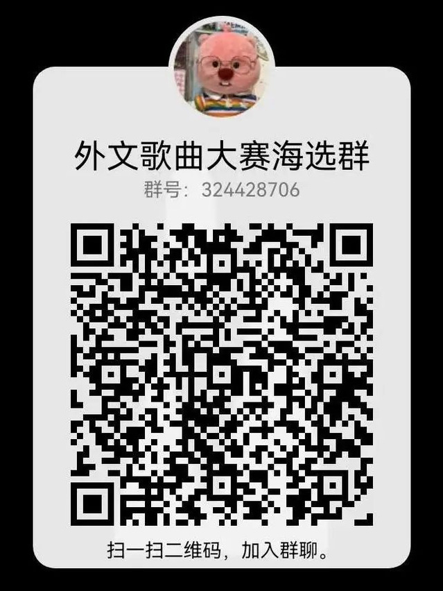 参赛曲目:除中文外所有语种(不包括中文方言),类型自选,内容积极健康