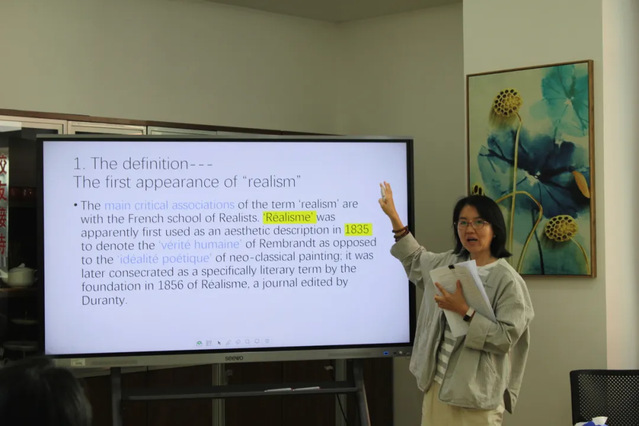 分享结束后,周院长对常老师的发言给予了充分的肯定,并指出现代小说作为一种新的文学体裁,正是因为其采用了现实主义手法。接着,周院长对本书第一章的五个部分分别进行了概述,并提出了自己的独到见解,深入分析了小说在叙事手法、人物塑造和主题表达上的独特性。