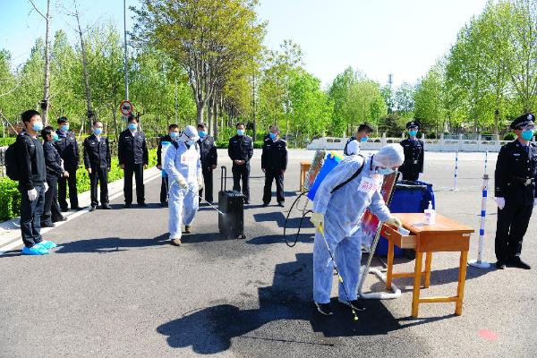 为进一步落实公安部及河北省教育厅关于学生返校疫情防控各项要求,根据《警察大学学员返校工作方案》相关部署,为提高学校疫情防控应急处置能力, 2020年4月23日,学校开展了学员返校疫情防控演练。医院、警令保卫处、后勤管理处、党委宣传部参加演练,学校副校长闫胜志、潘清义,总务长王震,总会计师刘玉奎观摩此次演练。