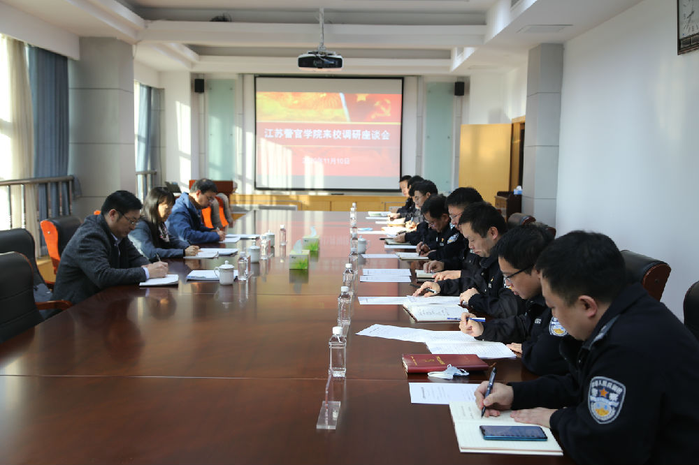 11月9日下午,江苏警官学院副院长黄进、研究生教育部主任吴杏华、党委办公室副主任王海群一行3人来校调研交流。