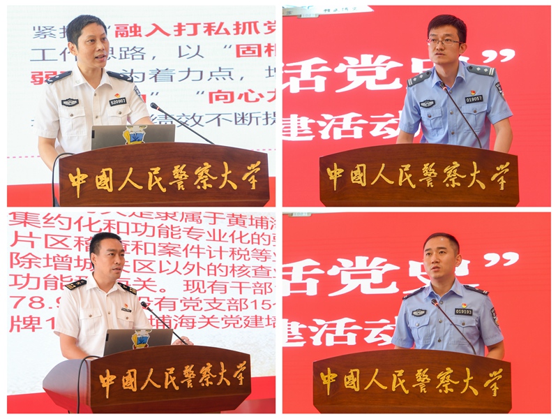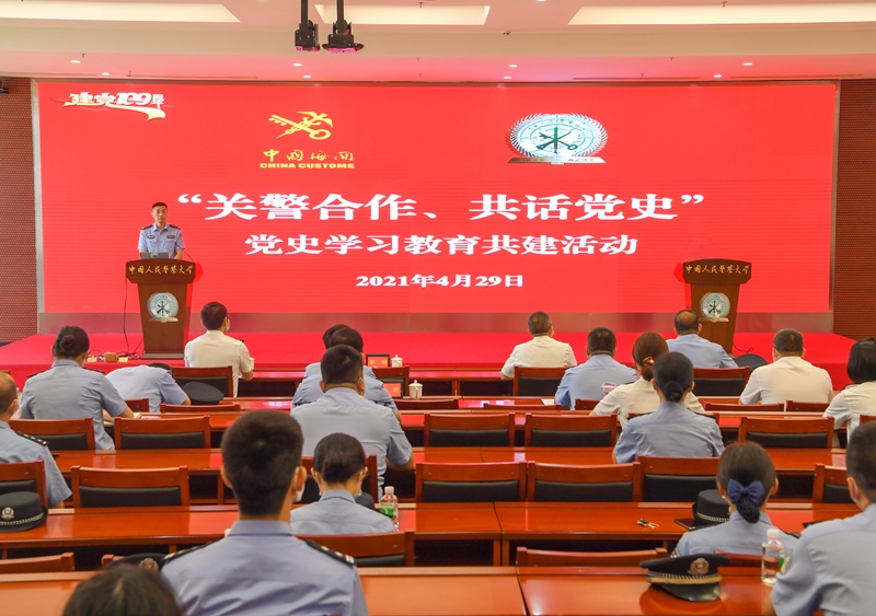校区政治处与东江口海关高度重视此次共建活动,积极创新载体形式,充分挖掘教育资源,开展了内容丰富、内涵深刻的主题活动。双方共同聆听了基础部石宏亮博士题为《跟毛泽东学读书》的精彩授课;在基础部张艺彤老师的带领下,重温了感人肺腑的红色家书《烈士陈觉和妻子赵云霄的书信》,赏析并朗诵了毛泽东气势磅礴的诗词《忆秦娥·娄山关》;双方4名代表同志围绕基层党建和党史学习教育,开展了交流发言,分享了经验做法;海关的领导、同志在警务指挥学院张磊老师的组织下,开展了队列训练。