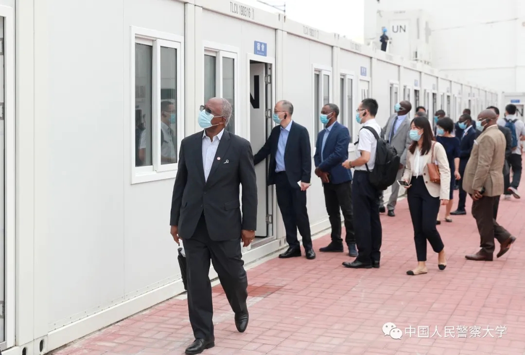 使节们观看了中国警察抗疫宣传片,参观了“大国承诺”“光辉历程”“维护和平”“共克时艰”“蓝盔精神”“最高荣誉”等为主题的中国维和成就展,实景体验了维和模拟营地。
