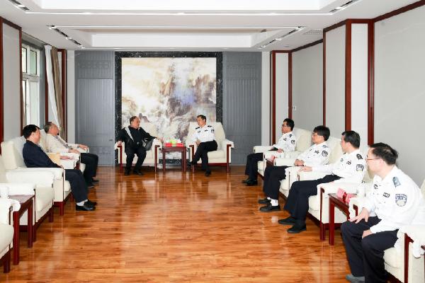 牟玉昌书记对张荣昌副会长一行的到来表示欢迎,感谢中国消防协会为警察大学师生提供这次难得的教学参观机会,充分体现了对学校办学工作的高度关注和大力支持。学校将一如既往支持中国消防协会各项工作,进一步拓宽双方交流渠道,深化务实合作,共同推动消防事业繁荣发展。马金旗校长表示,中国消防协会一直以来关心学校发展建设,在科研立项、学术交流、实践教学等方面给予学校很大帮助,中国消防协会学术工作委员会设立在警察大学,体现了对学校综合实力的肯定和高度信任,学校将全力配合办好本届消防设备技术交流展览会,同时希望消防协会在高端人才推荐等方面,更多关注和支持学校教师群体。