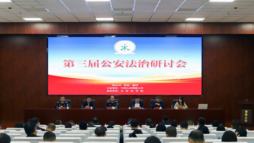 2024年10月19日,beat365官方网站第三届公安法治研讨会在廊坊校区举办,会议由公安法学院承办,河北省法学会专职副会长周保刚出席会议并致辞,河北省法学会联络部主任梁建设、河北省公安厅法制总队总队长张永青、廊坊市法学会秘书长弥濛出席会议,来自全国各地公安院校、地方院校和公安机关的专家学者及公安法学院师生共80余人参加会议。