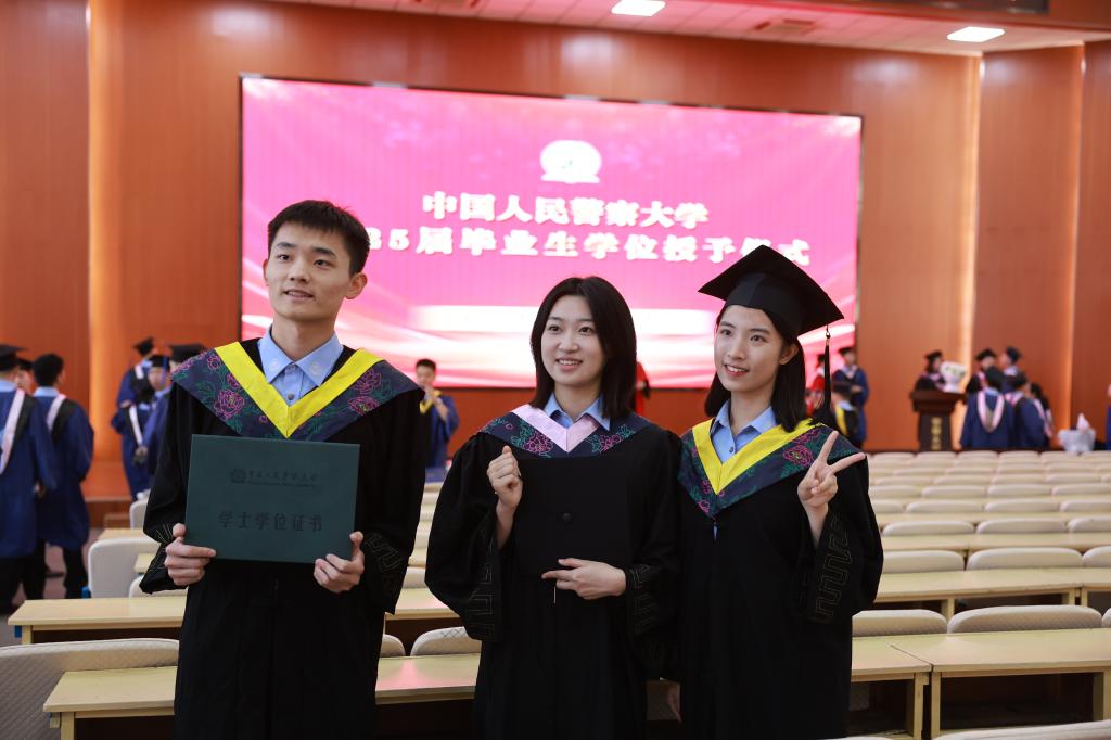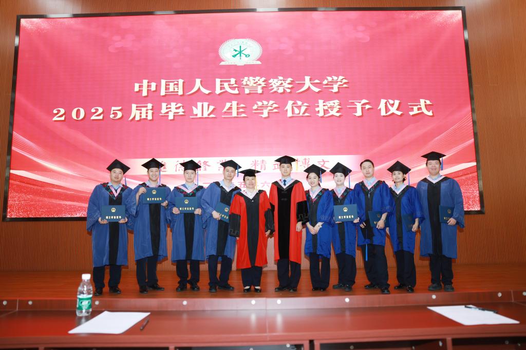 仪式在庄严的国歌声中拉开帷幕,学校向全体毕业生致以最诚挚的祝贺。在隆重庄严的学位授予环节中,身着学位服的毕业生们依次有序踏上了主席台,学校学位评定委员会主席、校长吴立志为毕业生们扶正学位帽流苏,并与他们亲切握手、合影留念。台下闪光灯频频亮起,掌声、欢呼声不断,同学们、父母亲友们脸上洋溢着自豪与喜悦的笑容。学位授予仪式在激昂的《中国人民警察警歌》和经久不息的掌声中圆满落幕。带着母校的祝福与期许,警察大学2025届毕业生们即将告别菁菁校园,扬帆起航,奔赴未来!