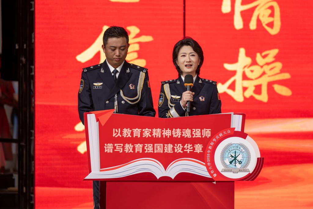 大会围绕 “以教育家精神铸魂强师,谱写教育强国建设华章” 主题,分四个篇章表彰在教学创新、教书育人等方面涌现出来的优秀集体与先进个人,致敬实战教官和光荣退休教职工。学生社团表演了精彩节目。
