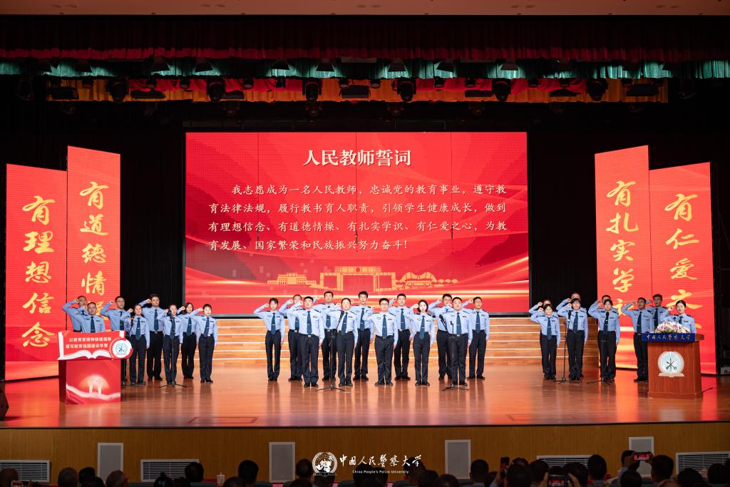 张立勋书记代表校党委致辞,充分肯定了全体教职工的辛勤付出和突出成绩,希望大家全面贯彻习近平总书记关于新时代公安工作和关于教育的重要论述,认真落实部党委、部领导的部署要求,全面推进教书育人、办学治校高质量发展。要牢记初心使命,争做为党育人、为国育才、为警铸剑的“大先生”。筑牢政治忠诚,坚定拥护“两个确立”,坚决做到“两个维护”,坚持“公安姓党”“警大姓党”政治本色,坚守从教初心,践行育人使命,全身心投入公安高等教育事业,提高质量,强化特色,助力新质战斗力提升工程,为公安工作现代化和平安中国建设贡献更多智慧和力量。要潜心教书育人,争做传播知识、传播思想、传播真理的“引路人”。传承红色基因,将爱国主义、集体主义、社会主义思想融入教育教学全过程,深入钻研学科专业领域的前沿理论和核心技术,因材施教、因势利导,并不断更新知识结构,丰富实践技能,提高学术造诣,更好承担起立德树人的根本任务,努力培养担当民族复兴大任的时代新人。要涵养高尚师德,争做以德立身、以德立学、以德施教的“好老师”。遵守职业道德,严格落实师德师风规范,热爱学生,尊重学生,关心学生,用爱心、耐心、责任心对待每一名学生。要求真务实、严谨治学,以高尚的学术道德和人格魅力感染学生、影响学生、引导学生,做为人师表、廉洁从教的模范。要服务社会发展,争做聚焦实战、专注科研、勇攀高峰的“实干家”。聚焦公安机关新质战斗力发展需求,更新理念、开拓创新、大力推动战学研协同创新,持续深化教学改革,促进专业特色发展,全力打造育人品牌。主动投身公安实战,积极参加公安实践锻炼,大力开展联合攻关,进一步提升学校的社会贡献度。