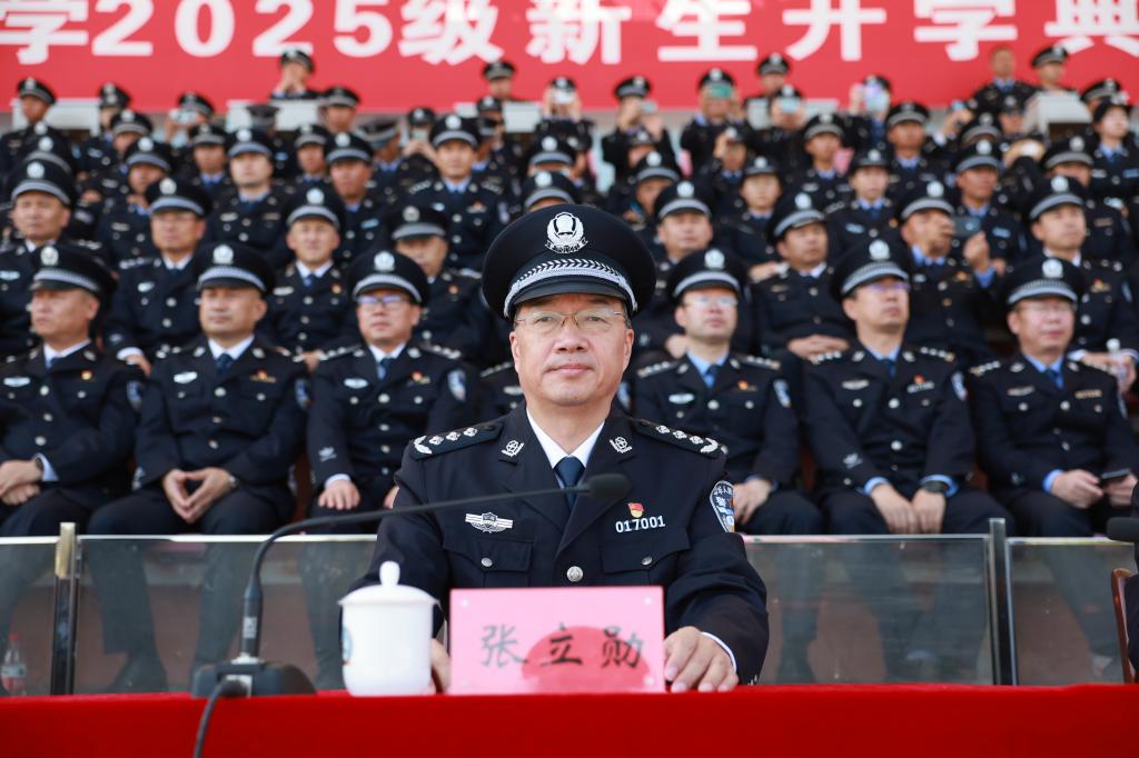 张立勋对同学们的成长蜕变和取得的成绩表示热烈祝贺,希望同学们在新起点、新征程上增长志气、涵养正气、焕发朝气、激发勇气,开启警校新生活。要以“昂扬志气”筑牢政治忠诚,做志存高远的追梦者。“明方向”,始终把个人理想融入党和人民的事业之中,把“当一名让党放心、让人民满意的好警察”作为毕生追求,在思想上、政治上、行动上始终同以习近平同志为核心的党中央保持高度一致。“强思想”,深学细悟习近平新时代中国特色社会主义思想,系统学习党史、新中国史、改革开放史、社会主义发展史和人民公安史,理解“人民公安为人民”的初心使命。“守底线”,时刻谨记“警校生”的特殊身份,主动抵制各类不良思想侵蚀,积极与错误观点和不当言行作斗争,旗帜鲜明传播正能量,弘扬主旋律。要以“浩然正气”涵养精神品格,做公平正义的守护者。“铸品德”,以社会主义核心价值观为指引,在课堂学习中领悟道德精髓,在队列训练中锤炼纪律意识,在同学相处中注重团结友爱,培养“心有所畏、言有所戒、行有所止”的道德自觉。“重操守”,深刻理解“执法公正”是公安工作的生命线,主动学习,深切感悟,在求学阶段就坚决筑牢廉洁从警、自律自省的职业防线。“勇实践”,积极参与志愿服务和社会实践,在服务群众中体会“为民服务”的社会责任,在执法实践中体会“公平正义”的尺度标准,坚守原则,让正气充盈、风骨长存。要以“蓬勃朝气”激发青春能量,做锐意进取的开拓者。“强根基”,尽快适应公安工作专业性极强的特点,把法条学透、把原理悟深,将理论知识与公安实战对接,不断提高自身综合素质、专业素养和思维层次。“求创新”,要密切关注公安机关、业务警种、实务部门工作动态,关注前沿技术,让科技赋能学习,以更高效的方式成长为适应智能警务时代的优秀人才。“促全面”,在专注专业学习的同时,积极参加体能训练强健身体素质,参与比赛竞赛提升竞技本领,参加社团活动拓展兴趣爱好,在警大丰富的学习生活实践中探索多元、发现热爱、增强自信。要以“无畏勇气”锤炼纪律作风,做攻坚克难的奋斗者。“守规矩”,从队列训练到内务检查做起,从警容风纪和一日生活制度严起,让令行禁止成为肌肉记忆,把松散的“小我”锻造成紧实的“整体”,把青涩的“学生气”练成刚毅的“警察魂”。“敢攻坚”,在体能训练、专业学习中突破自我极限,积极应对实战实训、重大任务中的一道道难题,在敢闯敢拼中夯实从警基础,筑牢担当底色。“强作风”,要传承武警学院的优良传统和过硬作风,培育“一不怕苦、二不怕死”的战斗精神,培养“闻令而动、快速响应”的执行能力,在摔打磨炼中强化意志、砥砺品行。