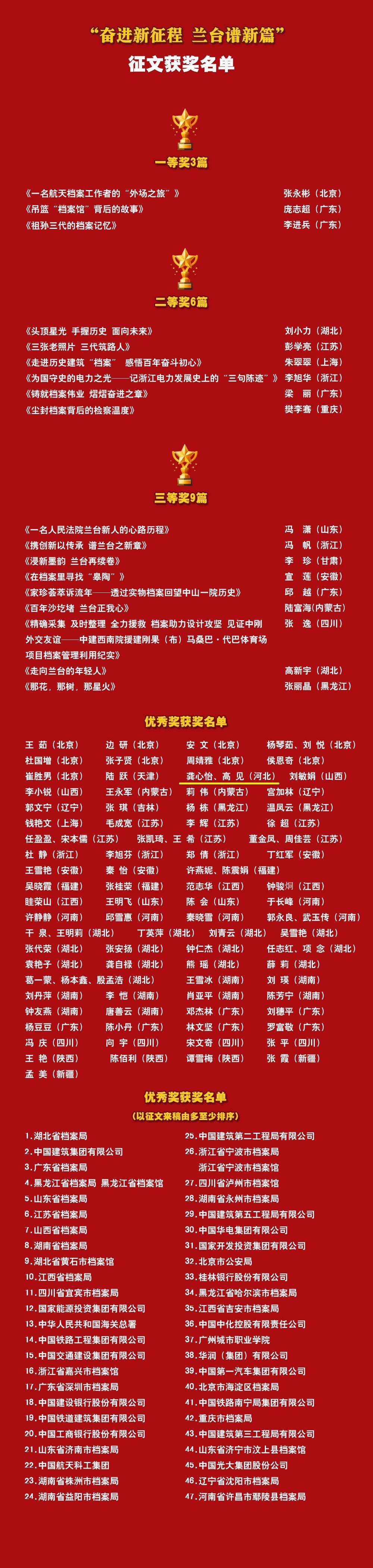 12月7日,国家档案局公布“奋进新征程 兰台谱新篇”征文评选结果,我校公安政治学院龚心怡、高见作品《兰台担新梦 凝力启新程》荣获优秀奖。此次征文全国共收到稿件20322篇,经过接收、筛选、初评、复评、终评5个阶段,评选出一等奖作品3篇、二等奖作品6篇、三等奖作品9篇、优秀奖作品82篇,这也是我校首次获此奖项。
