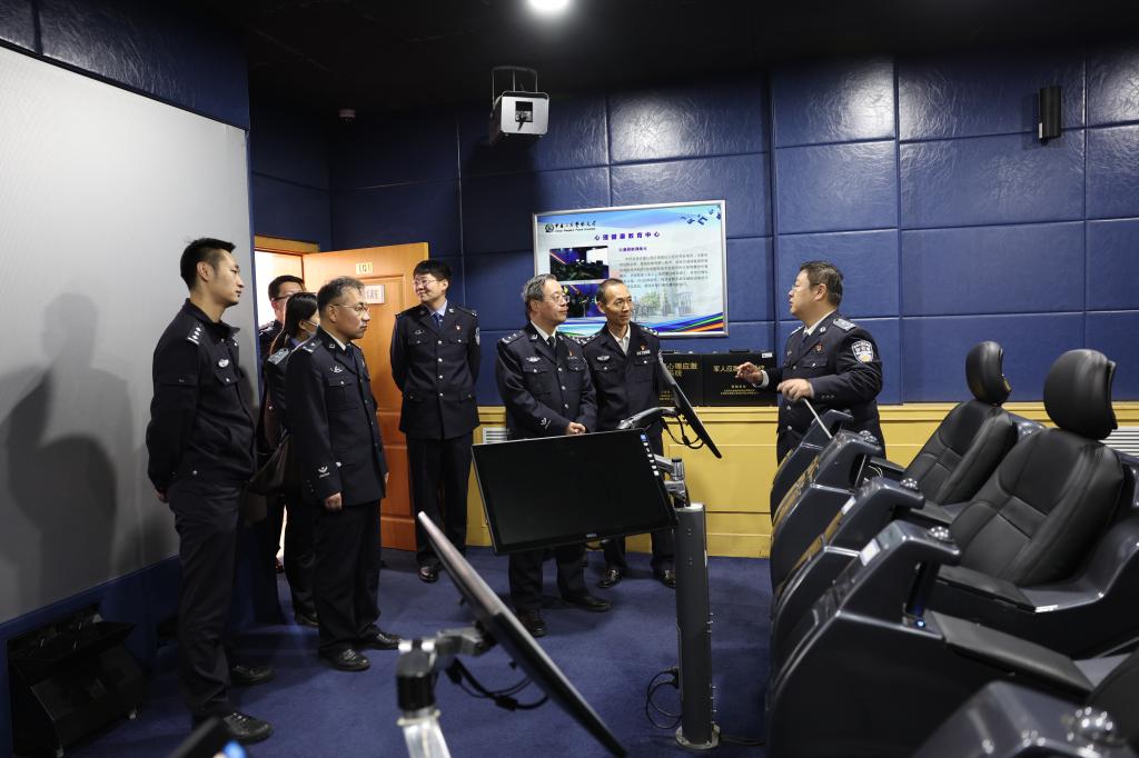 潘清义副校长主持召开座谈交流会,对调研组一行来校表示热烈欢迎,并介绍了学校建设发展总体情况。相关处室负责人和学管干部代表介绍了学校思想政治教育、警务化管理和心理健康教育情况。刘建会副书记介绍了中央司法警官学院基本情况,并希望双方进一步加强交流合作。会后,潘清义副校长陪同调研组参观了智慧警务学院学生宿舍和公安政治学院心理健康服务中心。