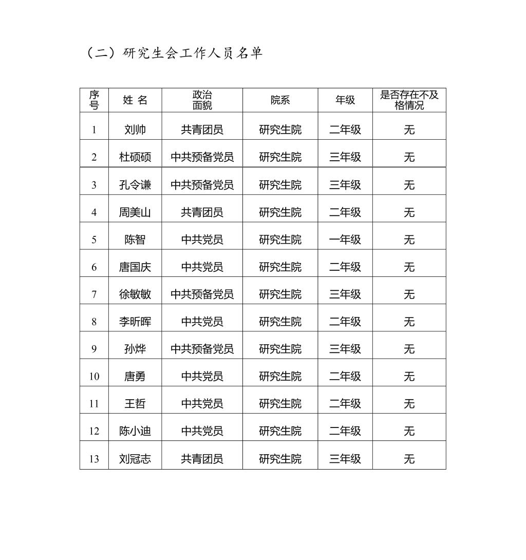第三十四条 研究生会工作人员应当为中共党员或共青团员,理想信念坚定,拥护中国共产党的领导,具有强烈的爱国意识、爱国情感,积极弘扬和践行社会主义核心价值观,品行端正、作风务实、乐于奉献,且具有全心全意为广大学生服务的觉悟和能力。
