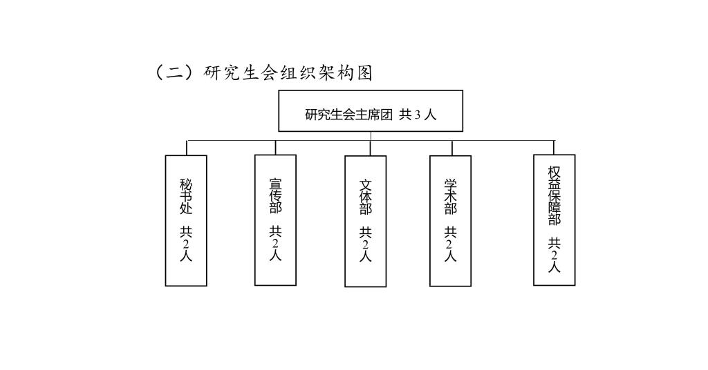 第三十条 研究生会下设秘书处、宣传部、文体部、学术部、外联部、权益保障部等,一般不超过6个,实际工作中可根据需要对工作部门进行必要的调整,各工作部门工作人员不超过4人。