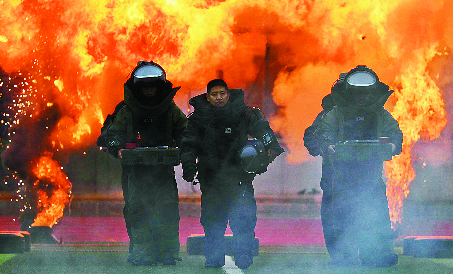 当时,废弃弹药中的老旧发烟罐突然泄漏起火,情况万分危急。张保国没有后退,向同行者示警的同时飞快冲到火炸药堆旁,踢飞了发烟罐。