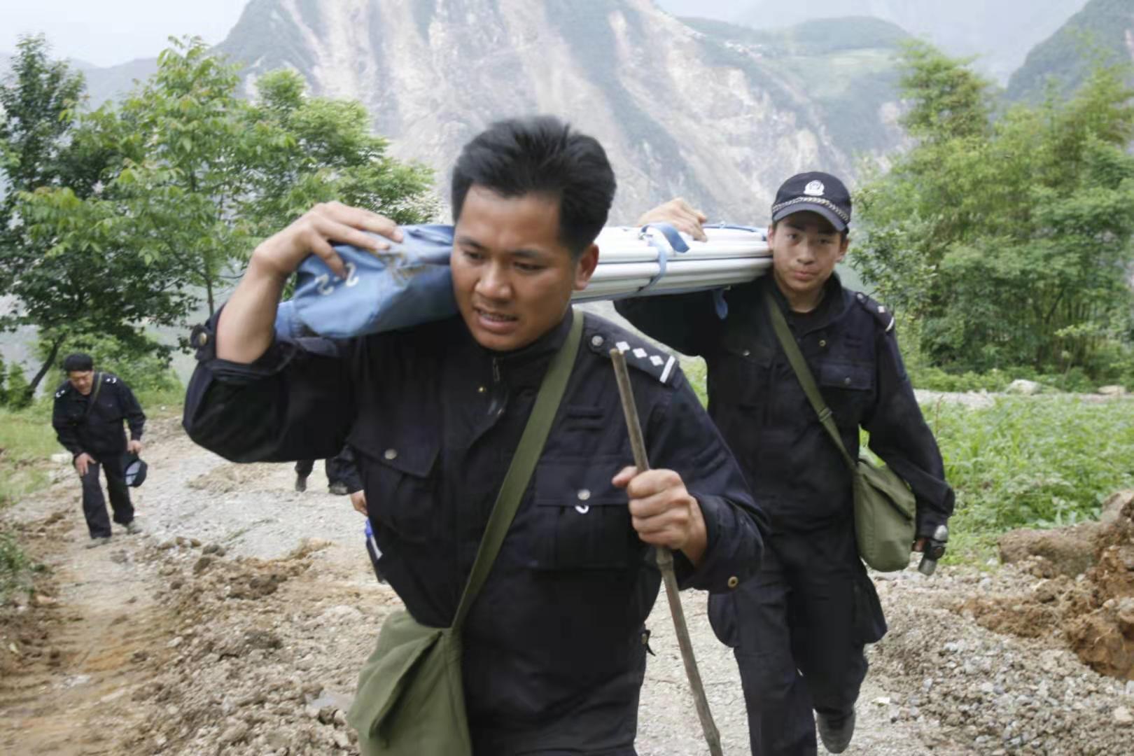 5月17日0时30分,驻地发生6.4级余震。转移过程中,谭纪雄的左脚掌被乱石扎出一道长达3厘米的伤口,鲜血渗透了袜子。为防止感染,上级领导安排他撤离至都江堰治疗,但谭纪雄坚决要求留下:“工作还没开始,我不能下山。我是特警,这点小伤不算什么。”连续55天的抢险救灾中,谭纪雄一刻也没有停下自己的脚步。