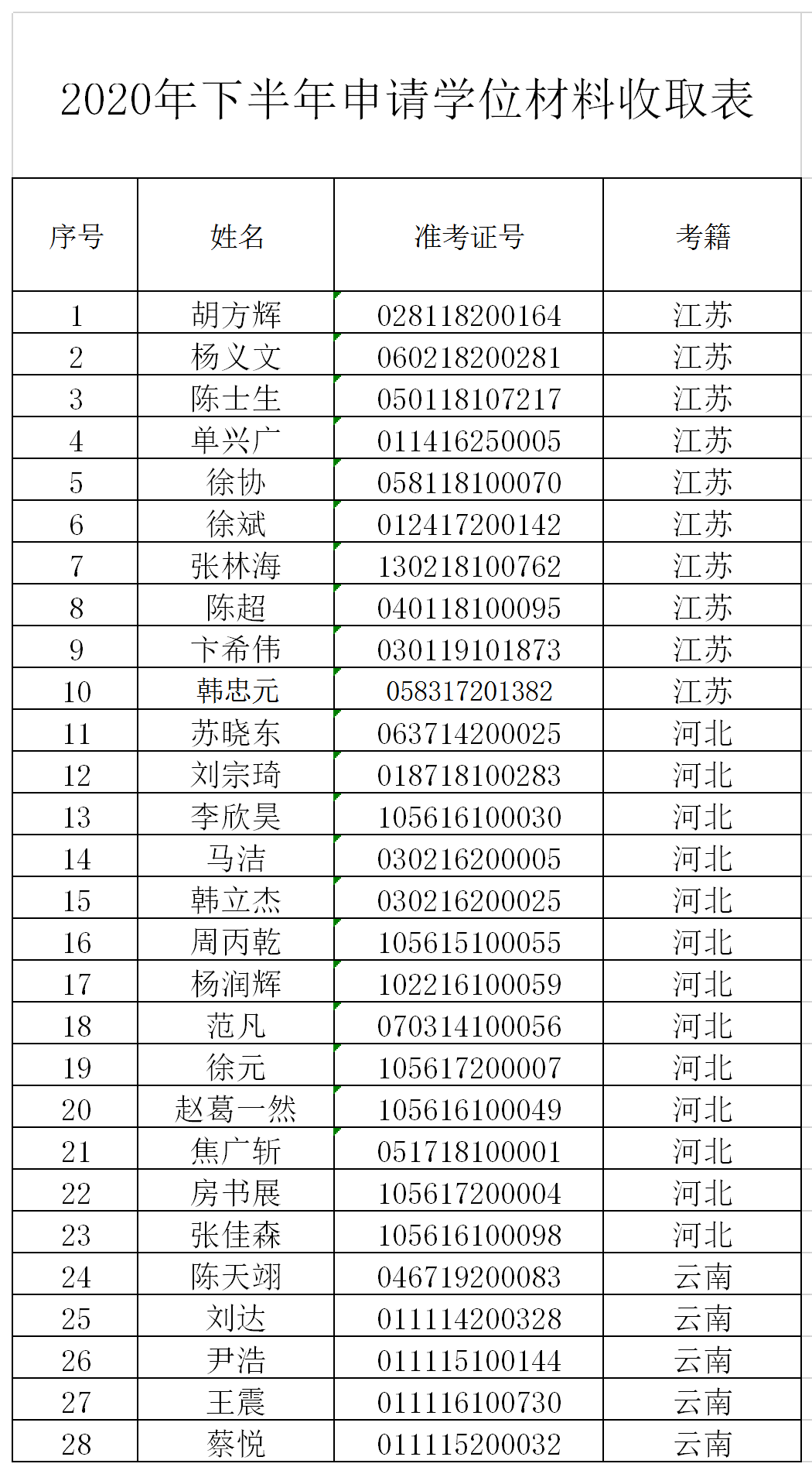 2020年下半年高等教育自学考试消防工程专业(独立本科段)学位申请材料已收齐,即将开始材料审核工作,现公示申请学位考生名单,如有疑问,请在12月0日前与警大自考办联系(联系电话:0316-2068987 13231685188),超出期限的异议不予受理。