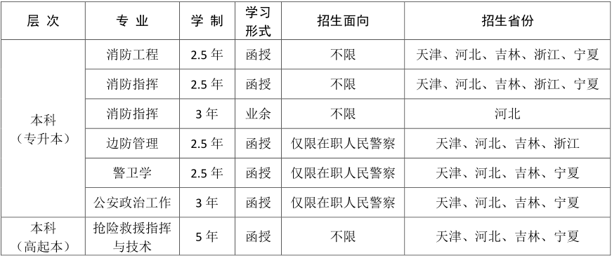 beat365官方网站高等学历继续教育坚持服务国家安全战略和经济社会发展需要,以满足学习者发展需求为导向,以提升学习者职业能力为重点,开设了边防管理、警卫学、公安政治工作、消防工程、消防指挥、抢险救援指挥与技术等6个本科专业。依托学校优良的办学条件,逐步打造了一支结构合理、素质优良、数量稳定的专兼职结合的教师队伍,构建了一整套完善的课程和教材体系,研发了教学资源丰富的高等学历继续教育教学平台,实现多样化教育、个性化学习、智能化服务、精细化管理。