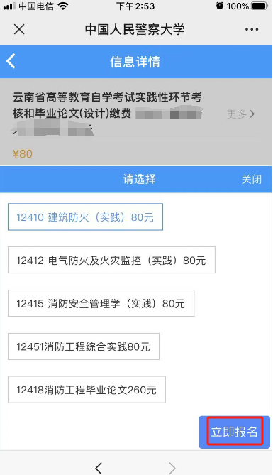 2.考生务必核对报名科目和缴费金额,完成报名缴费后,报考信息一律不予修改,费用不退。