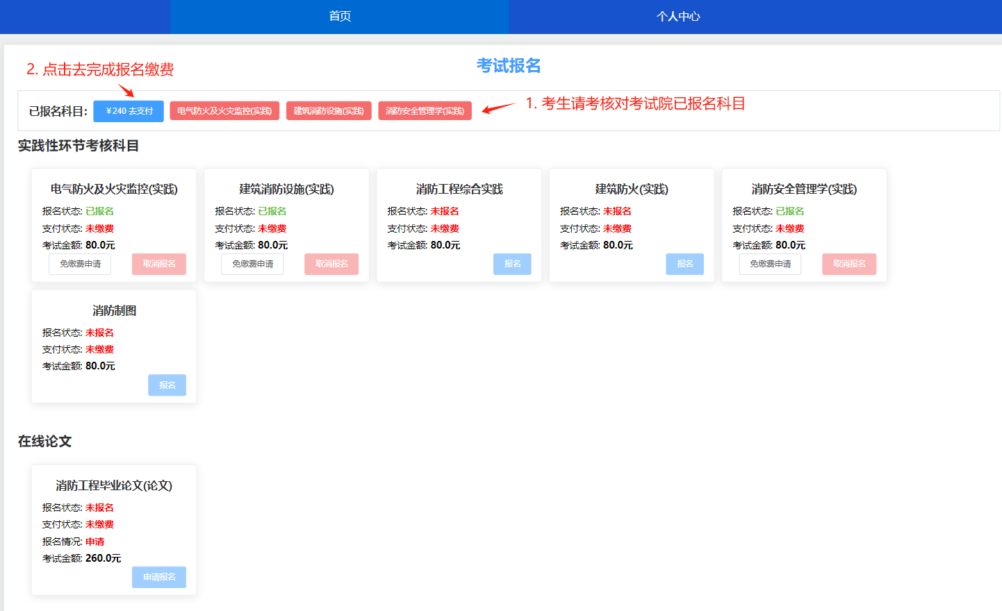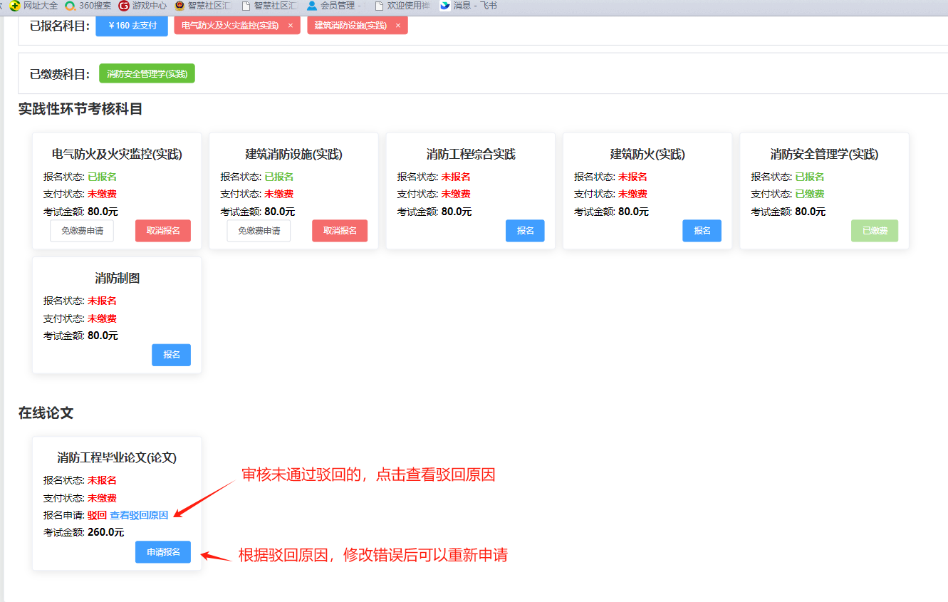5.审核通过,完成科目缴费