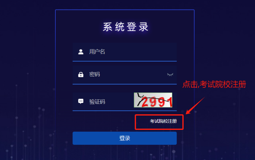 考生进入登录页面后,新用户点击“考生注册”,按要求填写注册信息完成注册。考生在登录页面通过准考证号和密码登录系统。已注册用户可以直接通过准考证号和密码登录。