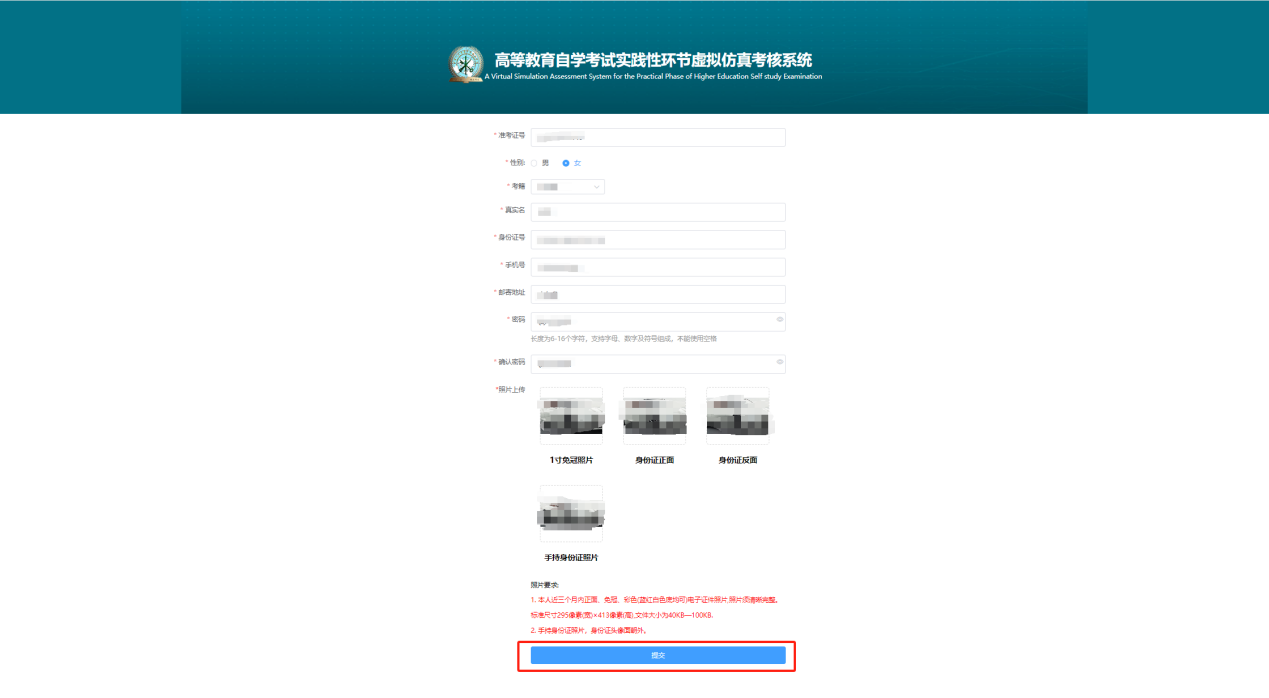 报名资料管理功能:管理本校考生相关报名材料。