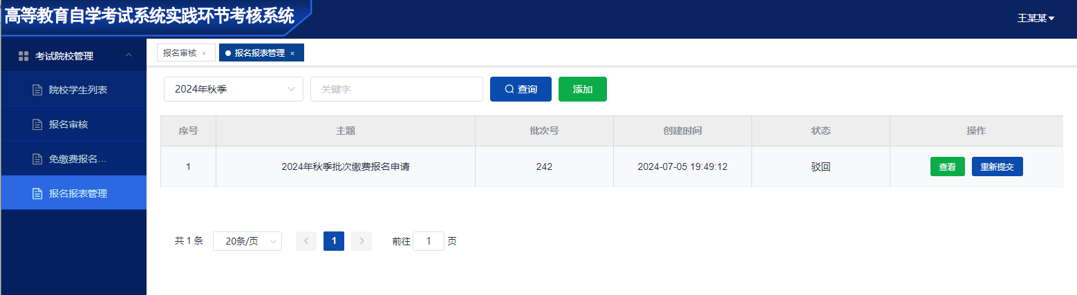 报名审核管理功能:审核本校考生的考试报名申请;