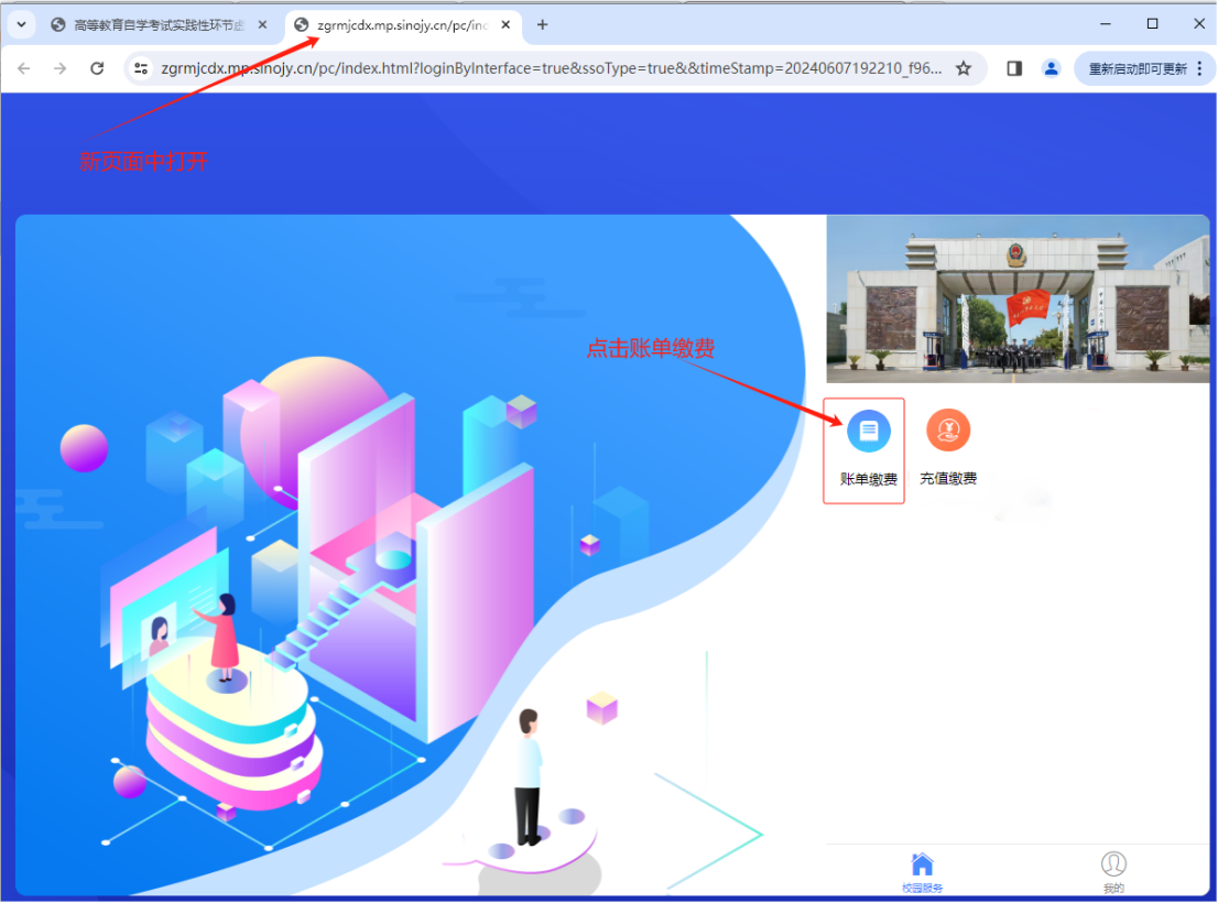 (2)进入财务缴费系统,点击账单缴费