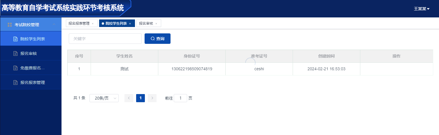 试点院校可以根据关键字查询本校所有的考生信息。