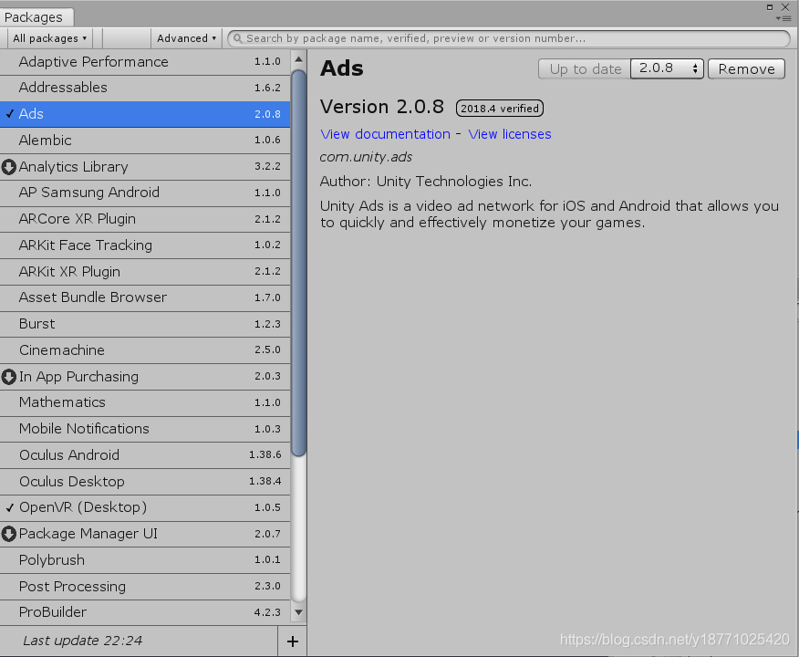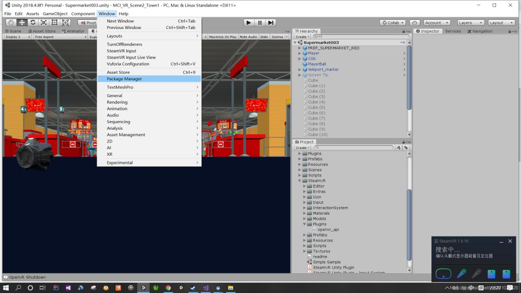 2、找到OpenVR,找不到可以在搜索框搜索,点击安装,重启unity即可