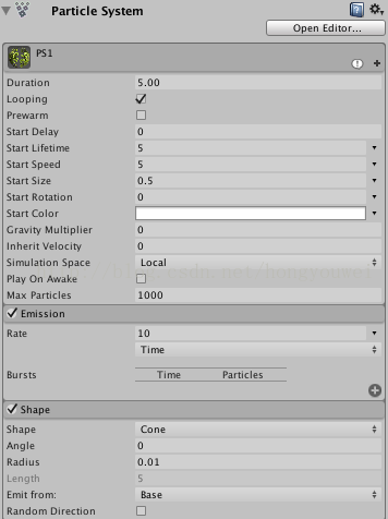 首先给大家看一下我的粒子系统的配置图: