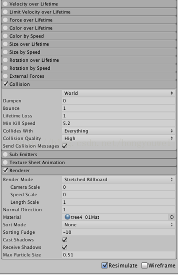 第五项(Collides With):可碰撞范围,设置可以与该粒子系统碰撞的层