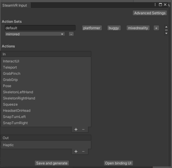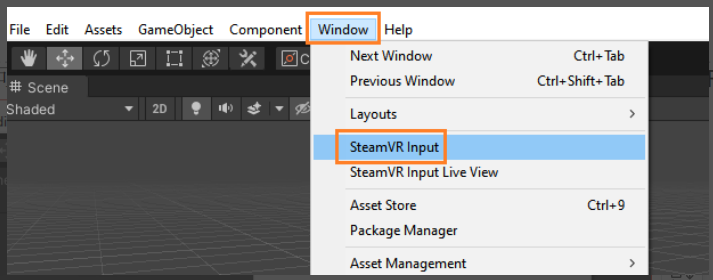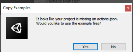 完成以上配置后即可在窗口中找到SteamVR Input 按钮,点击 Windows ->SteamVR Input,若弹出Copy Examples弹窗,点击Yes 按钮,然后等待导入和编译。