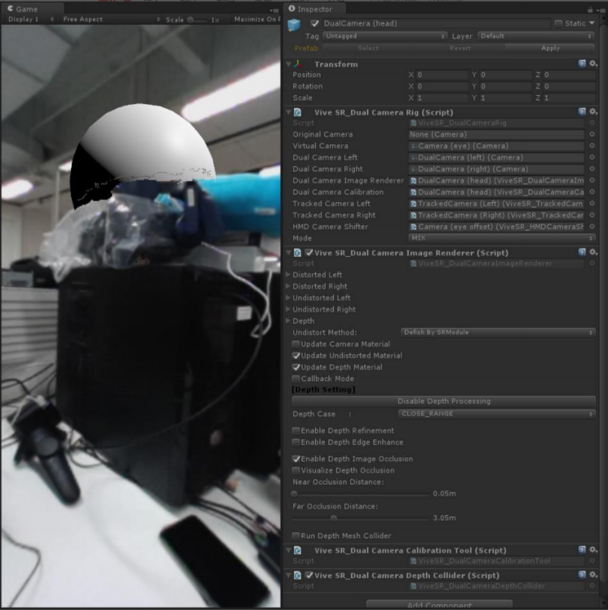 使用深度图像来遮挡虚拟对象