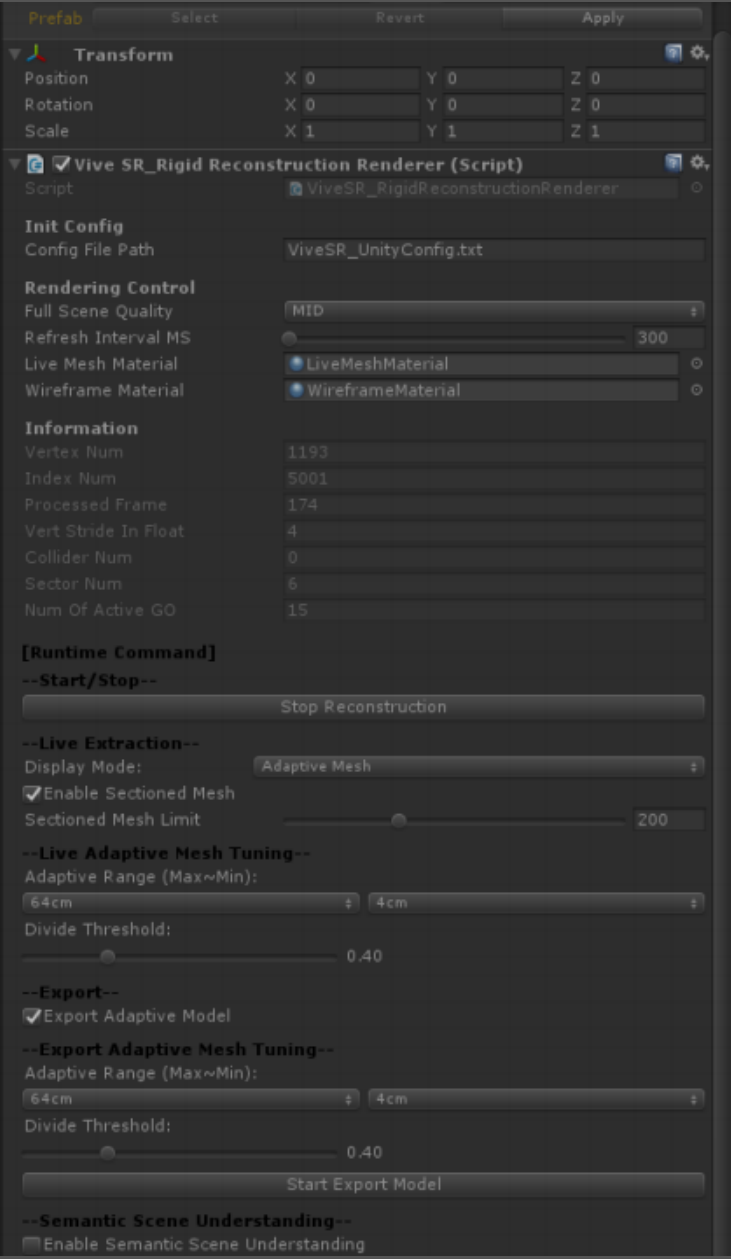 此模块允许您获取真实世界的 3D 语义场景信息。要启用场景理解,请点击“开始重建”,然后切换“启用场景理解”。