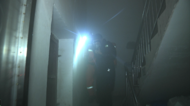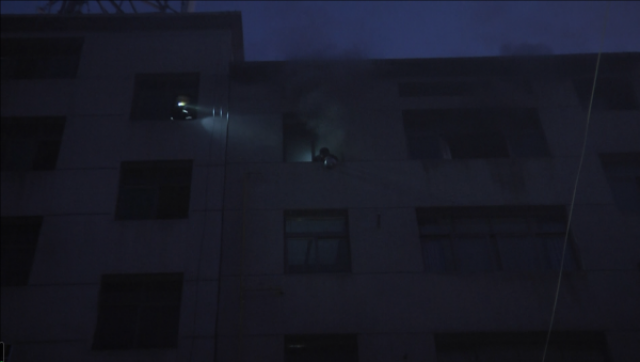 消防指战员到达现场后发现,浓烟已经从着火层弥漫至一楼,能见度低。经现场侦察和询问知情人得知,一位六旬老人被困在六楼窗台上,随时可能发生坠楼危险。