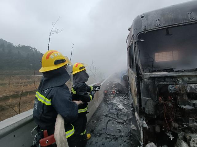 1月16日17时1分,抚州市资溪县济广高速汽车轮胎起火。资溪县消防救援大队立即调派共2辆消防车、14名消防救援人员赶赴扑救。
