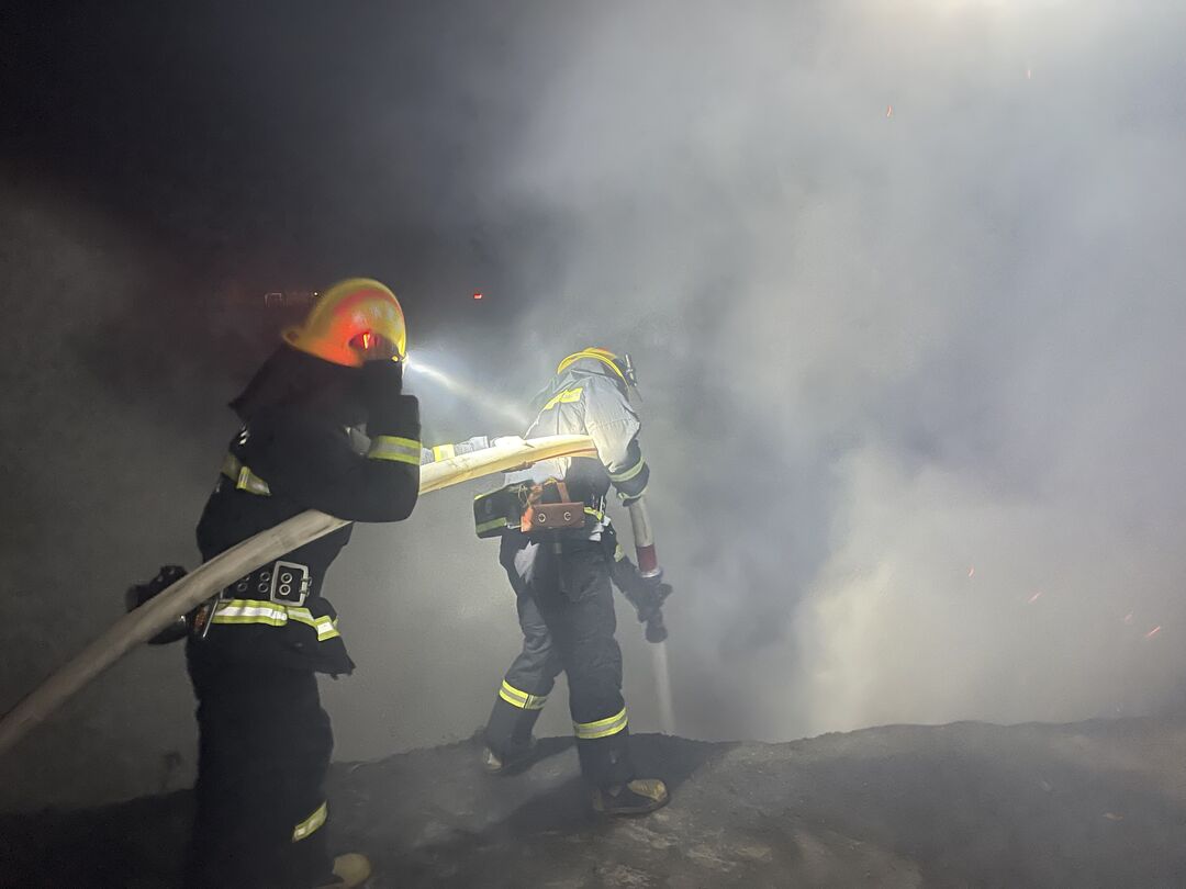 了解情况后,消防救援人员立即铺设一条水带干线,出一支水枪展开扑救,经过约十分钟地紧张救援,火势被成功扑灭。