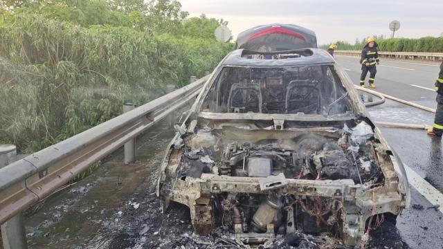 南昌:小车行驶中自燃 消防紧急救援