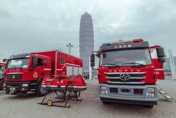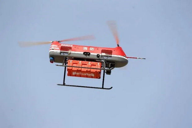 据了解,该项目研发的消防无人机灭火救援综合装备集成了电动侦查无人机、大载重无人直升机、承载运输车辆、灭火救援模块,具备高空灭火、火场侦察和救援等功能。借助纵列式双旋翼燃油动力无人机载重量大、航时长、抗后座力能力强等特点,搭载专用灭火装置和高效灭火药剂,可实施对高层建筑有窗房间火势的精准扑灭或快速压制。其弥补了举高消防车作业展开时间长、登高作业场地固定、灵活机动性差等不足,与内攻消防救援人员和建筑室内消防设施紧密配合,将大大提升灭火救援作战效率。