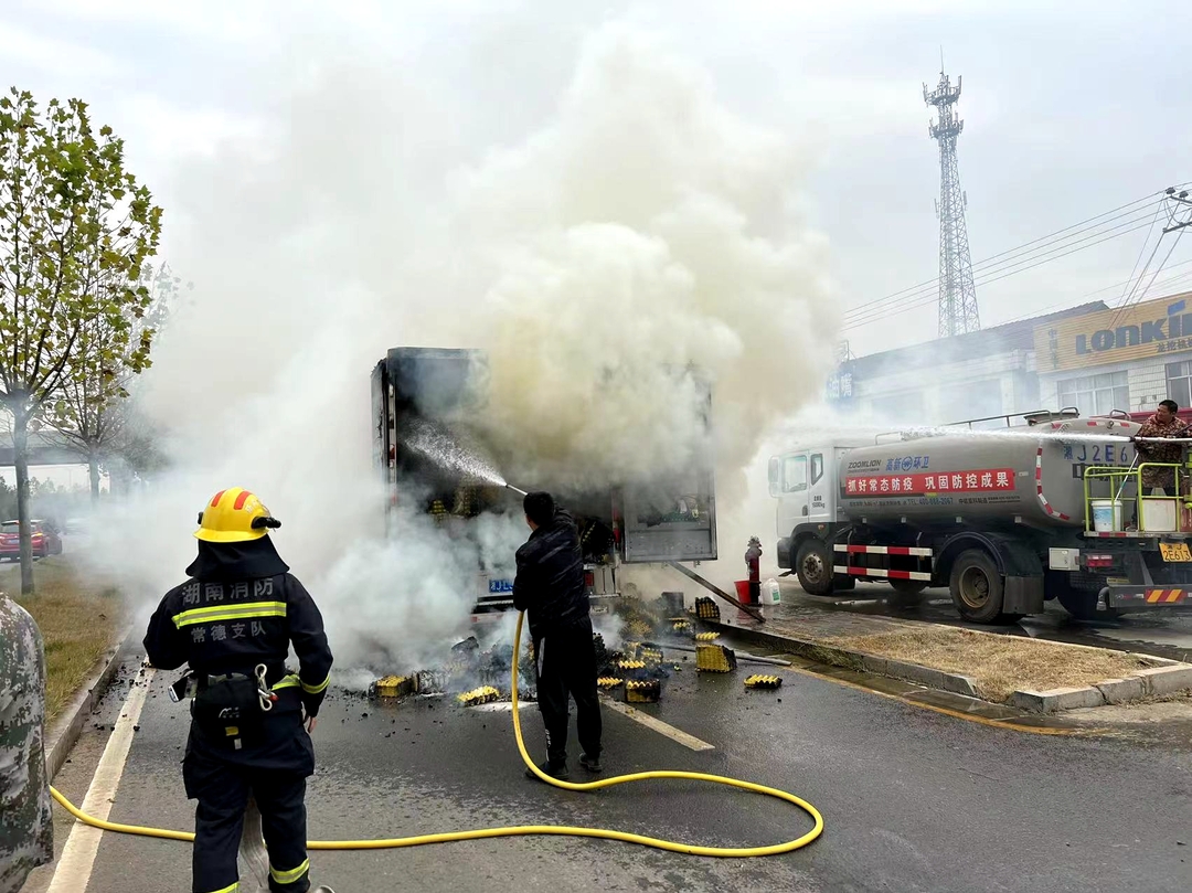 11月20日,207国道常德往临澧方向一辆快递车起火。