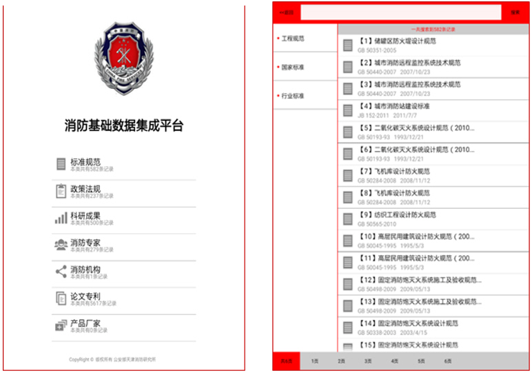 该成果收集了大量消防领域文件,系统基于PC、手机等多终端开发,便于消防从业人员查询消防信息,为消防知识普及、消防管理、科学研究、系统设计、标准制修订以及产品生产等方面提供数据支撑。